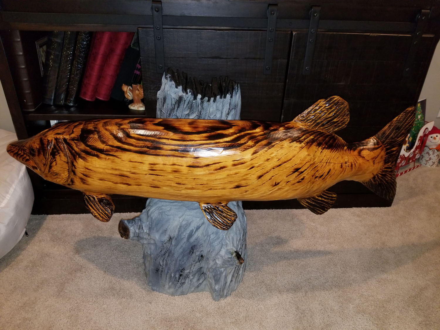 My wife got me a chainsaw carved replica of a muskie I caught a few years back.