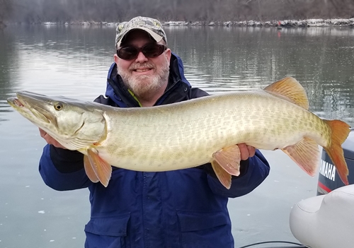 We just had ice out 2 and half weeks ago here on a small river in PA. Water temp was 35 to 36 degrees. Fished 3 times and caught one each trip (40, 36, and 34). They are catchable but not "on" yet. I'm using jerkbaits in the 6 to 7.5" range. Not the biggest fish, but some musky porn for you guys that are still froze in. A nice looking 40 from last weekend.