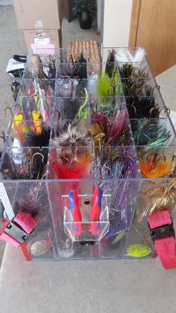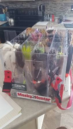 For sale, used tackle box. This is a cordwood esox box 24 slot with musky shop logo etched on the face. Has detachable carrying straps. one of the clear tool holders broke off, but the other side is fine. nice box. new retail was $179. will sell for 100$ plus shipping. no lures included.