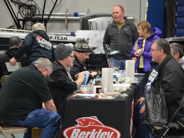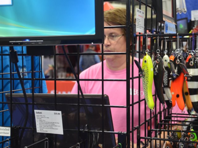 | When I have been to shows and then looking at the photos, I always marvel at the time it must take to set up those massive displays of lures. Before I retired, I would volunteer to help set up a booth for our bank at home shows. While much simpler, they still took a lot of time. These folks must spend hours packing, hours putting up displays and then hours taking down and packing up. Hopefully, they pack up much less than they brought! | |||