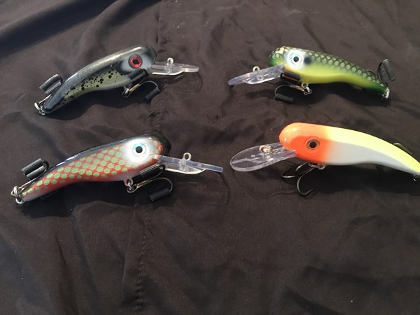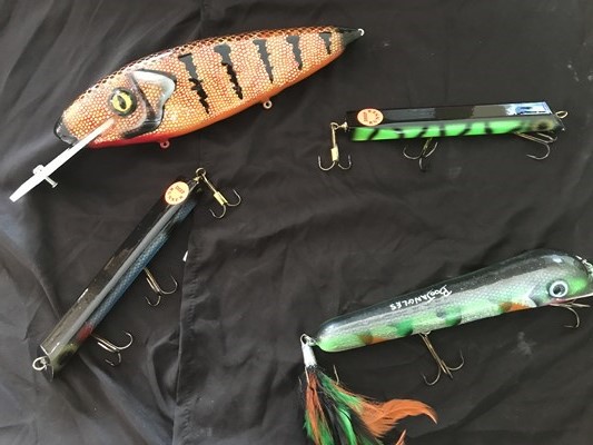 We have some items for multi-species people as well, we Have 2 lots from Dan linder with a mixture of panfish, walleyes, and bass. We also havesome custom lures in this next lot, We have a boojangles jerkbait, A custom crank bait by Gringo loco, and 2 wades wobblers. Stay tuned we have lots more!!
