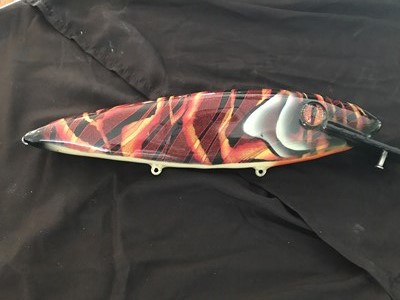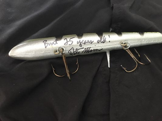 Once again Dick Pearson has Helped us out this year. We have signed hardcover copy of his Book Muskies on the Shield, and a signed reef hog, from his tackle box!! We also have another custom from Gringo Loco, 14" long by 1.5" wide.