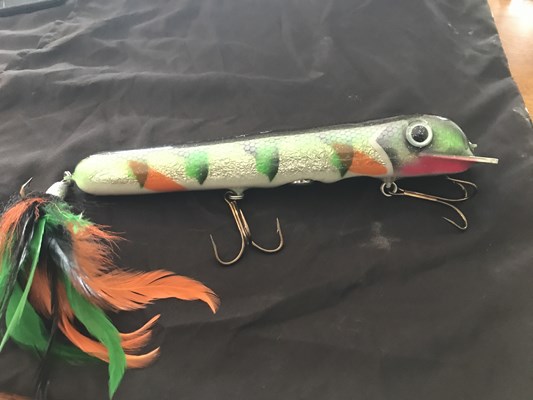 This lot has a McGlide donated by Dave McBride, and a Custom lure by Joe Getty. I can assure you that nobody has a lure like this!!