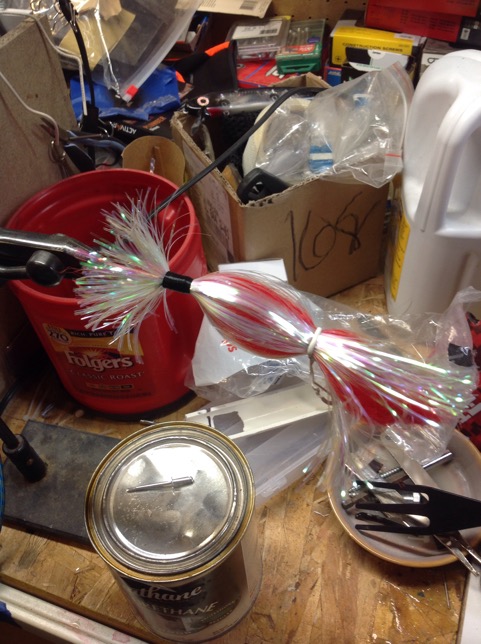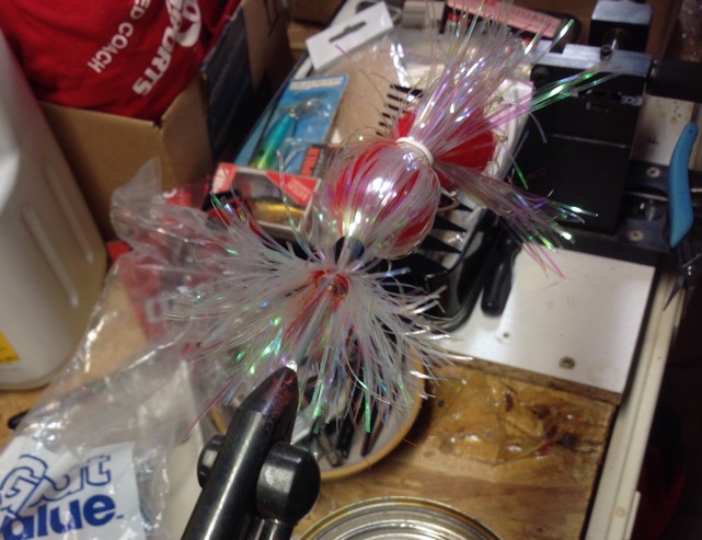 More Muskie Fishing -> Basement Baits and Custom Lure Painting -> Tying Flashabou with Zip ties