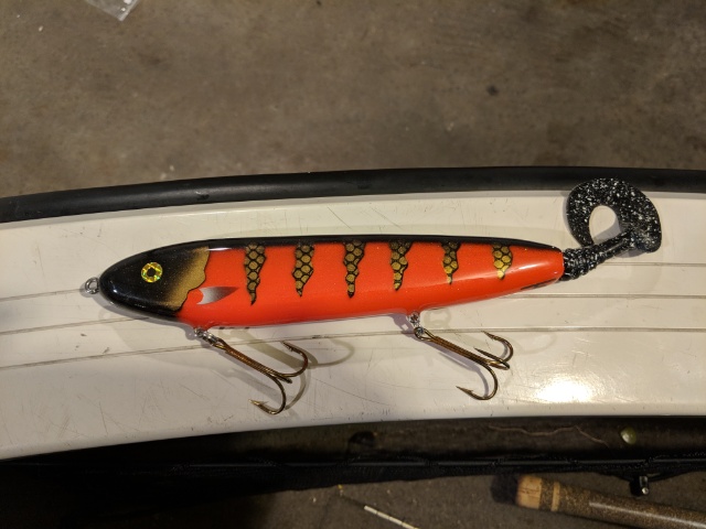 Looking to trade this hot tail 9" body 12.5" with tail not a scratch on it in perfect shape. Looking for a LOTW baby duck lake X topwater. Will look at any color CBJR CBs or FBs.