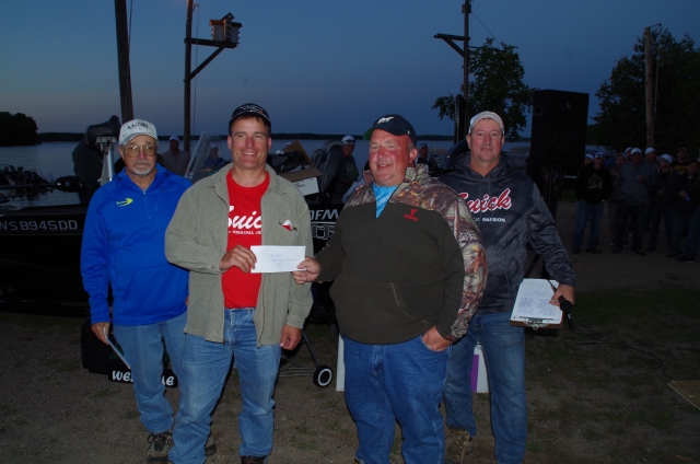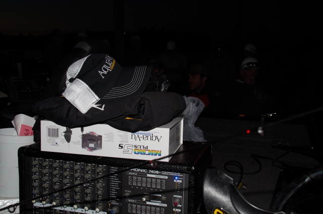 The Lund 1625 is all set as the weigh in platform piling in the prizes, cash, and winnings that will be given away starting around 7 PM this evening!