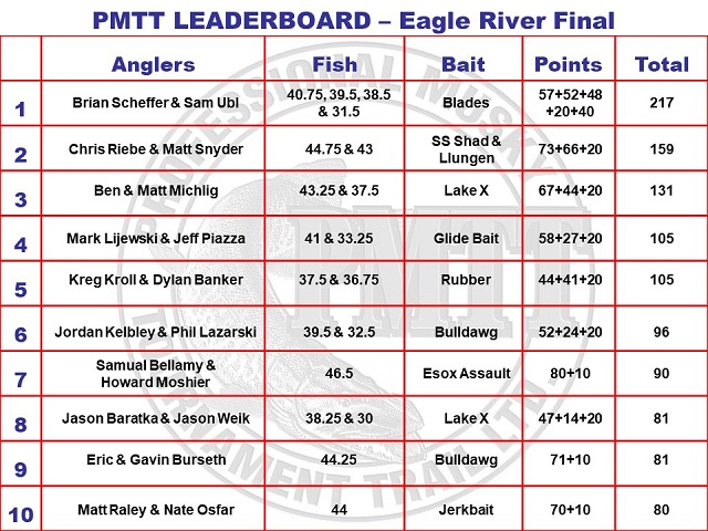 Muskie Fishing -> General Discussion -> Ubl and Scheffer Win Eagle River PMTT and $18,000.00 With Four