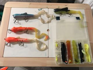 Posts: 72 | Hi all, Just cleaning out some old equipment. I am in Minneapolis, and prefer to meet in person. Prices are negotiable, will give discounts for multiple purchases. Baits vary in condition from new to chewed. If pictures are unclear as to condition, just PM me and ask for further clarification. Note, I would prefer not to ship, unless you want a pile of stuff. Oh, and I will not ship the rods. Thanks, Nick Rods (note: all have my name on it, need to be taken back to Thornes to have it taken off - I can do it, or you, no worries either way) 7’3” Thorne Brothers Diamondback Medium Rod - $75 8’6” Thorne Brothers C-Series Rod - $75 Reels (all in great working condition, spooled with 100lb PP, except Curado, which is empty) Shimano Curado 300EJ - $100 - PENDING!! Daiwa Saltist 20 - $100 Southern Reservoir Special - $80 shipped 2 - 5” Big Game Baits 2 - 6” Slammers 2 5” Jones Baits (wood) 3 1.5oz Rat-L-Traps 2 - 7” weighted Big Daddies 1 - River Run Lures 8” Manta Bucktails - $80 shipped 2 - Musky Mayhem Double Cowgirls (10s) 4 - Musky Mayhem Single Showgirls 1 - Spanky Bait Fireballs (10s) 2 - Spanky Bait Fireflies 2 - Northland Boobie Traps (10s) 2 - Llungen In-Lines 2 - Mepps Giant Killers (Sassy Shad) 2 - Musky Mania Lily Tails 2 - Fudally Tackle Musky Candy Spinnerbaits - $50 shipped 1 - Ace Baits Small Spinnerbaits - $5 1 - CJ’s Silicone Spinnerbaits - $5 each 1 - Llungen In-Line Spinnerbaits - $5 each 2 - Ruff Tackle Rad Dog Spinnerbaits - $5 each 2 - Fudally Stump Hawg Tandem Spinnerbaits - $5 each 2 - Llungen Nut Buster Magnum Spinnerbaits - $5 each Rubber - $60 shipped 1 - Musky Innovations Magnum Double Dawgs (old, with side fins clipped) 2 - Musky Innovations Magnum BullDawgs 1 - Musky Innovations Shallow Magnum BullDawg 2 Shack Attack 9” Suzy Suckers (with Steve Jonesi-designed bulldozer blades) 3 - 8” DeLong Kil’r Eels 1 - 13” DeLong Kil’r Eels Edited by Nicholas Lehnertz 7/23/2018 1:13 PM Attachments ---------------- image1-1.jpeg (37KB - 333 downloads) image2-1.jpeg (43KB - 361 downloads) image2.jpeg (48KB - 345 downloads) image3.jpeg (46KB - 386 downloads) image4.jpeg (43KB - 356 downloads) image5.jpeg (42KB - 352 downloads) image6.jpeg (47KB - 342 downloads) IMG_E4501.jpg (28KB - 341 downloads) IMG_E4502.jpg (26KB - 349 downloads) IMG_E4503.jpg (24KB - 347 downloads) IMG_E4509.jpg (21KB - 373 downloads) IMG_E4516.jpg (22KB - 332 downloads) IMG_E4520.jpg (19KB - 361 downloads) IMG_E4523.jpg (17KB - 352 downloads) IMG_E4527.jpg (20KB - 330 downloads) IMG_E4532.jpg (20KB - 313 downloads) IMG_E4536.jpg (18KB - 349 downloads) IMG_E4539.jpg (15KB - 321 downloads) | ||