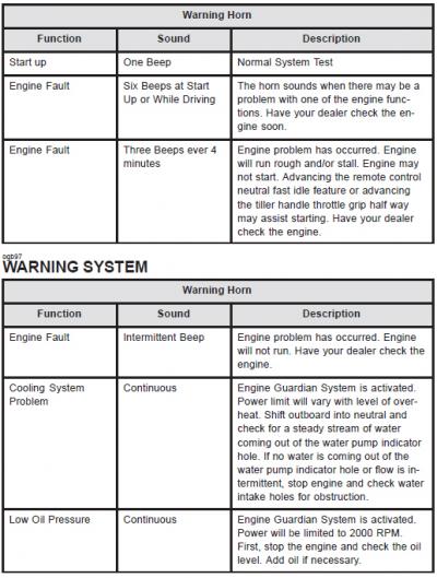 | Jump to page : 1 Now viewing page 1 [30 messages per page] Muskie Fishing -> Muskie Boats and Motors -> 3 warning beeps on a mercury 60 hp 4 stroke | |