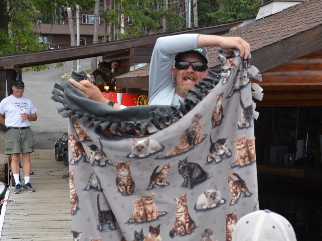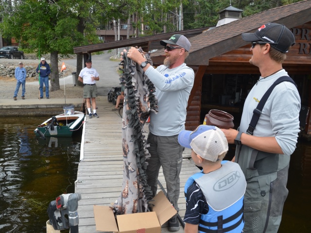 We've given away 5 crappie rods (thanks to James at Vexan Crappie and Ozark), a Tooth Tamer 8.5' muskie rod, some $50 gift certificates from Cabela's and a large performance cooler (thanks to a couple VERY generous contributors), 30 Suick Lures, a selection of Vexan Wasp crappie and walleye lures, a selection of Berkley and Johnson products (again, thanks to a generous contribution) some hats, MuskieFIRST shirts, and more. Literally everyone attending a dockside each day won a nice door prize.