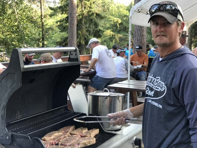 Around 45 total, I think. The steak fry was stellar as usual, with the best steaks one can hope for cooked by the good folks at Spring Bay Resort! Multi-species fishing was good yesterday, but the crappie bite was slow and muskies just lookin'. I'll have to check on who fished muskies last night, after the steak fry a lot of folks just hung out and had a good time. I know when we hit the water at 6 AM this morning, no one else had even moved in camp.
