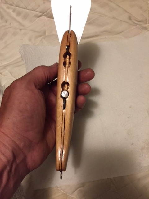 Posts: 141 | Here is another method that I came up with to add weight to my thru wire baits. I made these thin strips of lead that get pressed into the slot. It removes any doubt about them being perfectly centered, and also eliminates the need for drilling holes and patching them in. To make these weights, I poured lead about 1/8" deep into a metal Altoids box and then cut them into strips. They worked out really well and didn't take long to do. Edited by All Eyes 9/23/2018 3:12 PM Attachments ---------------- thru wire weight2.jpg (93KB - 503 downloads) thru wire weight3.jpg (81KB - 436 downloads) thru wire weight.jpg (58KB - 466 downloads) | ||