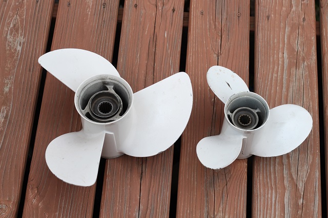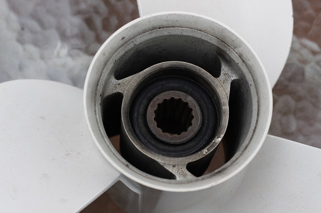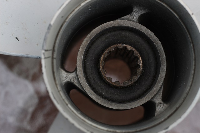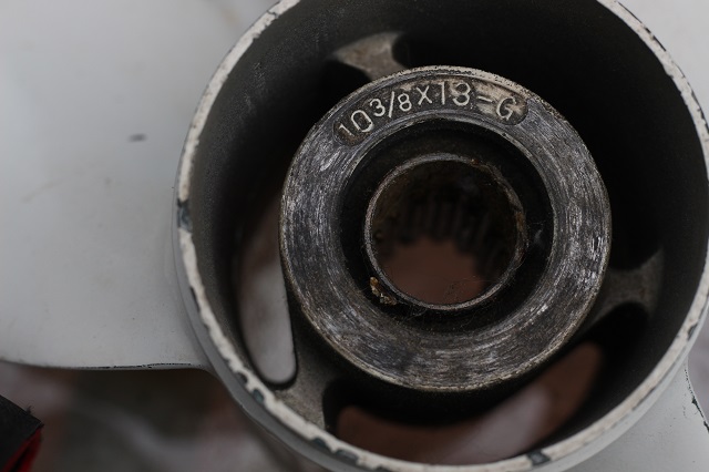 Also have 2 props for sale. The larger prop came off a 2008 Yamaha F75. The smaller prop was given to me when I bought a boat several years ago with a 1999 Merc 50 hp 4 stroke, but I never tried it on that motor to see if it fit. I'm pretty certain this is a Yamaha prop also. The 13 1/2x15 is the 15 spline. The 10 3/8x13 is the 13 spline.