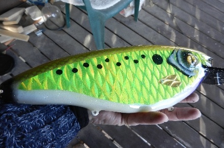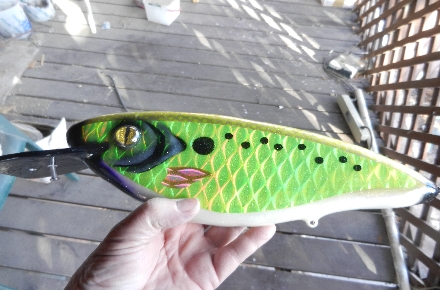 | Jump to page : 1 Now viewing page 1 [30 messages per page] More Muskie Fishing -> Basement Baits and Custom Lure Painting -> Spotted green sucker |