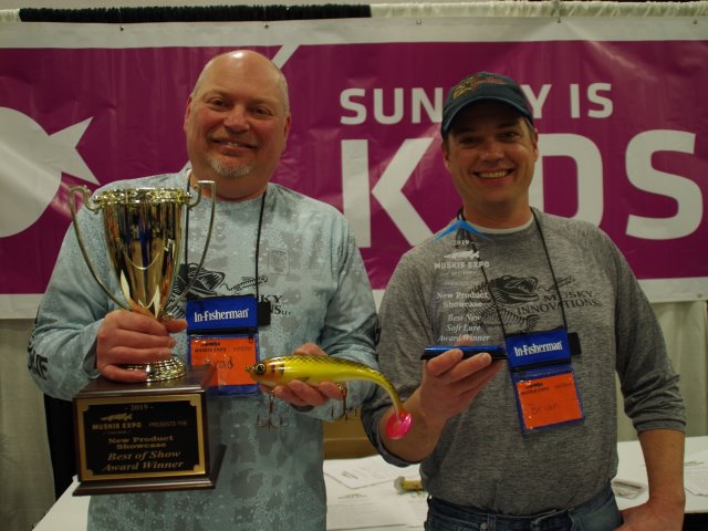 Posts: 32951 Location: Rhinelander, Wisconsin | New Products Showcase: Each exhibitor in the show received a ballot to vote. Best New Muskie Rod: St Croix Rods Best new Hard Bait: Suick Lures Frankensuick Best new Soft Boat: Musky Innovations Magnum Shallow Swimmin' Dawg Best New Terminal Tackle: Stealth Tackle Kit Best New Fishing accessory: Outdoor Grips New Grip Best Tackle Management: Just Encase New Light Tackle Carry box Best New Bucktail: Musky Mayhem Mayhem Moon DS4 Best In Show: Musky Innovations Magnum Shallow Swimmin' Dawg | ||