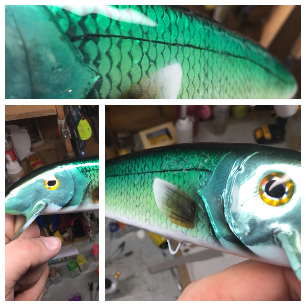 Posts: 141 | A tip I use to hide the edge lines from foil or decal material, is to coat the foiled bait with epoxy and let dry before painting it. Here is a video from one of the best in the business showing how he goes about foiling a bait. This is Mikko from Finland, aka Solar's Baits. If you aren't familiar with his work, I recommend checking out his other videos. His baits are incredible. https://www.youtube.com/watch?v=2PapcxZfYAQ | ||