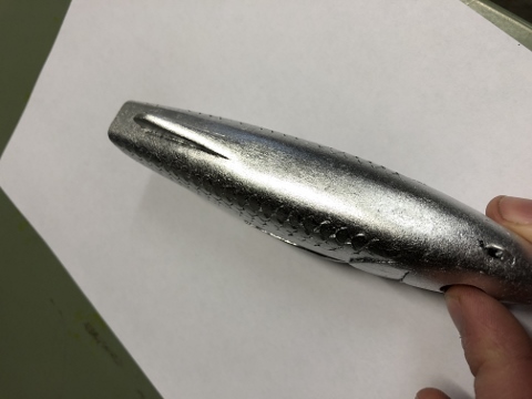Posts: 54 | Thanks for the kind words guys, didn't mean to hijack this thread, just trying to share. JD, that gold bait was built in 2011 and has been a consistent producer; just had to sand down the top layer of epoxy and re-coat so you could see something other than toothmarks. It was on the rack when I needed an example for embossed gill detail Eastman, the pasta roller works awesome! You can adjust the thickness for different types of texture and what degree of texture you want. Garage sale special as was the silicon baking mat I use for backer. The scratch coat of clear immediately put on the foil really helps prevent clouding from additional handling, you can manipulate the foil while having the clear barrier between your hands and the metal. Great idea with the strips of foil scales on your bait by the way, I never thought of doing something like that. VW Attachments ---------------- IMG_2589 (480x360).jpg (70KB - 573 downloads) | ||