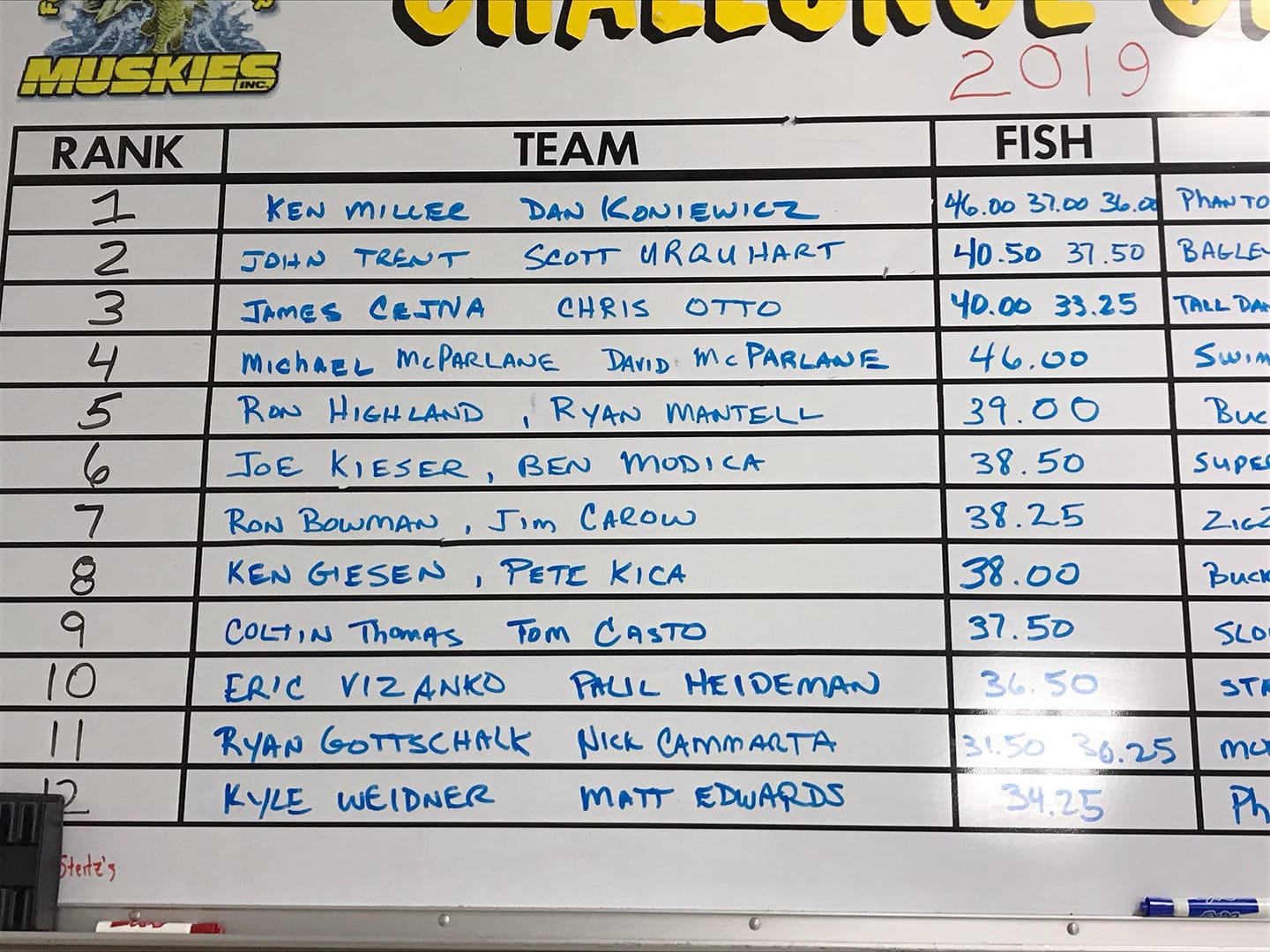 Here is a spreadsheet, 15 teams caught 20 fish with big fish being a 46x2