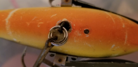 Actually, I've pretty much went with my 2 HD split ring deal for all my single belly hook lures these days to help reduce torque and put a different wear pattern on the lure. You can change the wear pattern with different size rings... BTW the picture is of a newer threw wire bait with smaller rings to start with. Even though there's no way to actually prove it helps us to stay hooked-up, it just seems logical to me that a larger free swinging treble almost has to be a slightly better mousetrap.