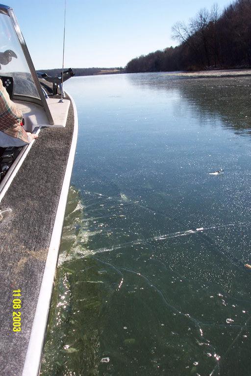 Here's a couple of photos of deer from last w/e (Nov 8) when it was a little chilly. The ice was enough to stand on, but seeing open water beyond the ice is all my friends needed to keep going. Not sure now much damage the boat took.