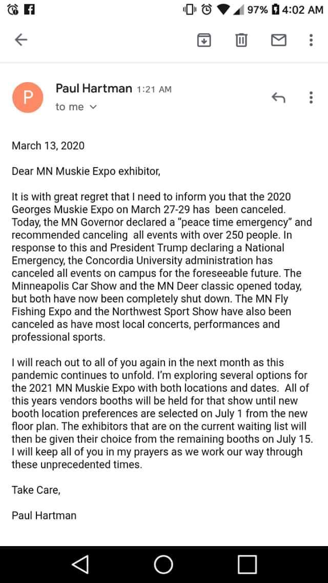 Posts: 32954 Location: Rhinelander, Wisconsin | Looks like the NW Sports Show is off. | ||