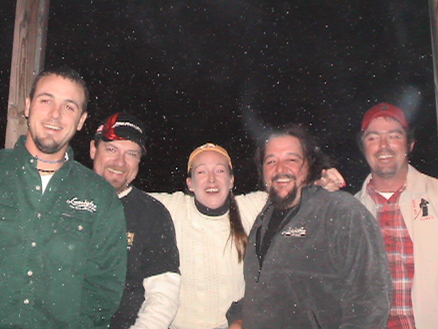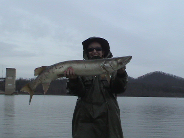 Posts: 172 | As always we had a great time, mother natural was not very kind to us snow,rain, sleet, high winds, muddy water and butt a?# cold but there were some fish caught. Muskie Girl 2000 AKA Karen Deiptro took first place in the outing with 2 fish, a 35.5 on a sucker and a nice 41.5 on a Bulldawg. Yes "just another reason you don't take GIRLS on a muskie trip", that was our standard joke all week as Karen showed all us boys up. Karen fished with me and Mike today and she lost a monster right at the boat while Mike was waiting for a netting opertunity and I was to be the camera man. The fish came off a known big fish spot on a main lake point. Karen did everything right in a very tough situation and had the fight of her life but she swam away after one of the longest battles on my boat in years. I"ll let her tell the rest of the story, and believe me it has a lot of bad lanquage in it. Should of seen the spread on the sucker, scary. Most of the action came on suckers in clear water, of which there wasn't much. Mike and I moved fish in pretty muddy water on glides and I blew one at the boat. As for Mike he blew a fish as ussual.Ha Ha take that Hulbert no just riding him like I always do. We had great food, 2 days of good weather, beer of course and a blast. Hope more of you guys can make it next year. Looking forward to our spring fling next year. Scott Salchil and I have a new recipe for turkey, Kentucky Mountain Smoked and Fried...it was awesome. | ||