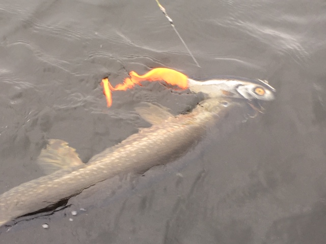 The first lure here I added a bulldawg style tail, and lots of lead in the head to sink very fast and straight down, so I could fish it deep and get a good jigging action.