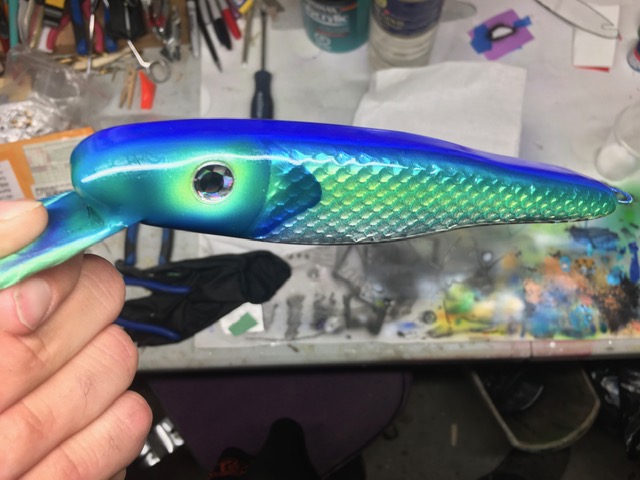 More Muskie Fishing -> Basement Baits and Custom Lure Painting -> Couple new lures