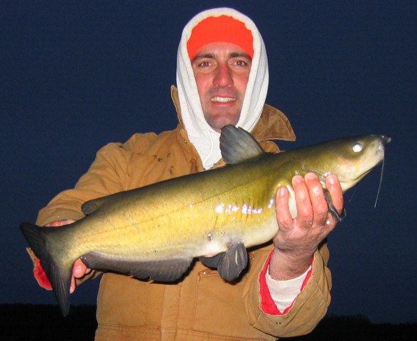 Everything I was marking was from 16' down to the bottom so I let some line out to put my baits in their faces. Got one rip and three tree's NO SKI'S. So for the last hour I decided to get out the ol Fuzzy and try and scare one of those bottom dwellers up. About 15 minutes later FISH ON, she fought hard and stayed down (Oh yeh all day in the cold has finally paid off). Got her up to the surface only to see what I thought to be a huge football sized Walleye, COOOOOOOOOOOL........ NO DICE, snagged a FAT A$$ catfish in the side about 26"-28". Oh well, time to go home, park closes at 5:00, AT LEAST I DIDN'T GET SKUNKED!!!!!!!:)