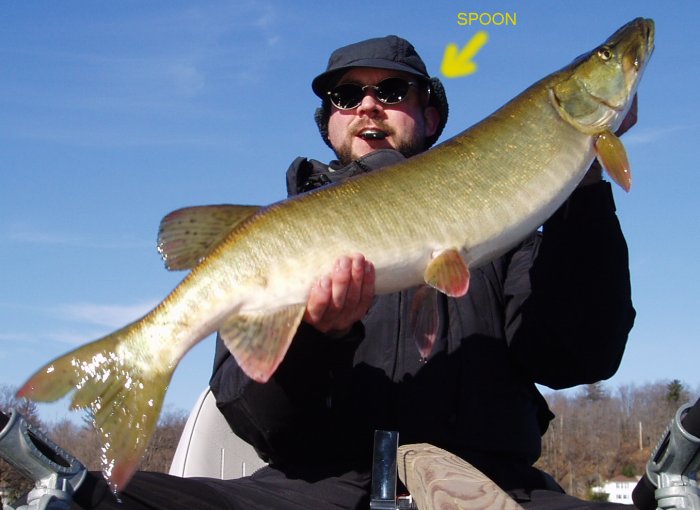 Posts: 157 Location: Collegeville Pa | Had a near miss / exciting experience late this afternoon trying to catch the elusive 12/31 muskie. I was fishing a local river and was concentrating on some eddies I knew held fish. On my first cast with a Manta( a super winter bait) I had not 1 but 2 38"+ class Tigers cruise in on the bait. Unfortunately I ran our of water(I was wading) and the fish moved back into the eddy. I raised 1 of the fish 4 more times but could not get it to eat. This was the first time I ever had 2 fish come in on a bait. They looked like a pack of wolves. Not being able to figure 8 costs me some winter fish when I wade. Forgot the spoon anyway!!! Going back tomorrow so maybe I'll catch the first in 2004. Happy New Year to all musky hunters. Greg | ||