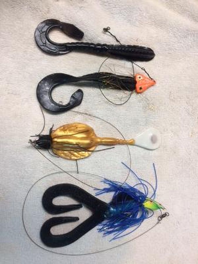 Posts: 2331 Location: SE, WI. | Pa Tigers n trout - 10/27/2020 3:55 PM jdsplasher - 10/27/2020 12:59 PM I just now considered this but i was planning on getting a tranx 300 high speed and a st croix medium heavy rod with a 3/4 to 3 rating. Would this work for creatures even with braid main line or should i just stick to the spinning setup i mentioned? Also, is there anywhere i can buy those baits already made?Pa Tigers n trout - 10/27/2020 11:24 AM I have read the article a few times which was what made me want to try it for the local tiger musky. I tried a bass stand up jig and got immediate interest from a nice sized tiger. However i don´t really have a good spinning rod for musky other than a medium heavy 7 foot penn fierce 2 with a lure wt of 3/4 to 2 oz, and i believe it is a fast action. Would it be sufficient? That action is fine for creature fishing. I usually suggest a Bass flipping stick, 3/4-2 oz. 7’6” up to 8’6”. Here R some of my Custom pours. The top 2 plastics R Fandango's. They R My best Tiger Producing Creature. The Frogs and Paddle Tails R my best fish Producers For My Area. JD I prefer a bait casting Rod. Way better leverage for hook sets ! Heavier bait-casting Rod are tough to throw light jigs And you want some bend to hold fish, especially if your using a braid. I use both braids, and a 17-20 mono. Mono for cold weather as braids freeze in cold temps. JD