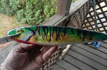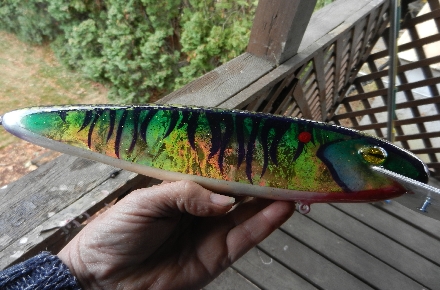 | Wow that is a massive bait! Love the foil job! I've heard a lot about basswood... Does it carve well?
