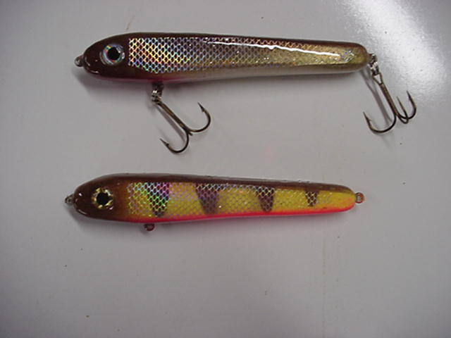 Posts: 236 | MuskieE got himself a couple new hot baits. They're both made of High implastic plastic and have a great design. From the little I've tested, they work great. I myself have been making custom glide baits for awhile now, and I must say that I am impressed with these. | ||