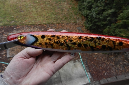 More Muskie Fishing -> Basement Baits and Custom Lure Painting -> Flirefly