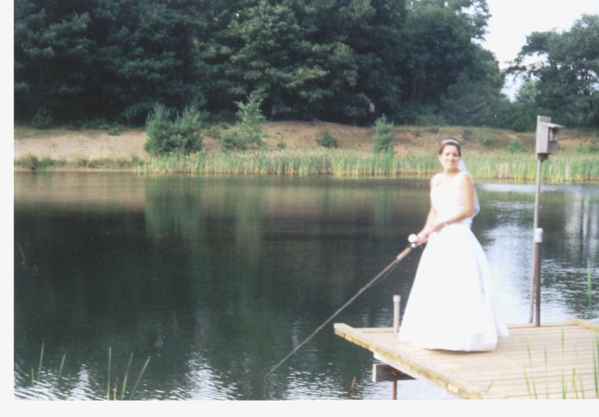 Posts: 3518 Location: north central wisconsin | The other wedding topic reminded me to post some pictures of ours finnally. My fiance and I were married in August, and after the ceremony we decided to go to the water. We headed to my buddies pond that has a couple muskies in it, and took a few pics from the dock. My buddy had a rod along so my bride took a few casts and had a fish about 42" hit right in front of the whole wedding party. We got it on video which was cool(the fish splashed her white dress a bit) but the pictures showed the fish coming up before she got it to go on the 8. At the dance, my dad brought out a bunch of antique musky rods and the whole place serenaded us. That was a moment she and I will never forget!!!!! The last pic was taken down by the river that we fish quite often Edited by Reef Hawg 1/7/2004 9:27 AM Attachments ---------------- wedding serenade 001.jpg (59KB - 352 downloads) wedding serenade 002.jpg (37KB - 333 downloads) wedding serenade.jpg (48KB - 335 downloads) wedding serenade 003.jpg (107KB - 328 downloads) | ||