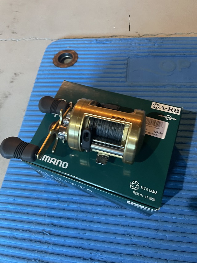 For sale Shimano Calcutta 400B. Reel was used for I would guess 10 casts last year. It is spooled with brand new 100lb Fishing LYN Braid. I would call this a brand new reel.