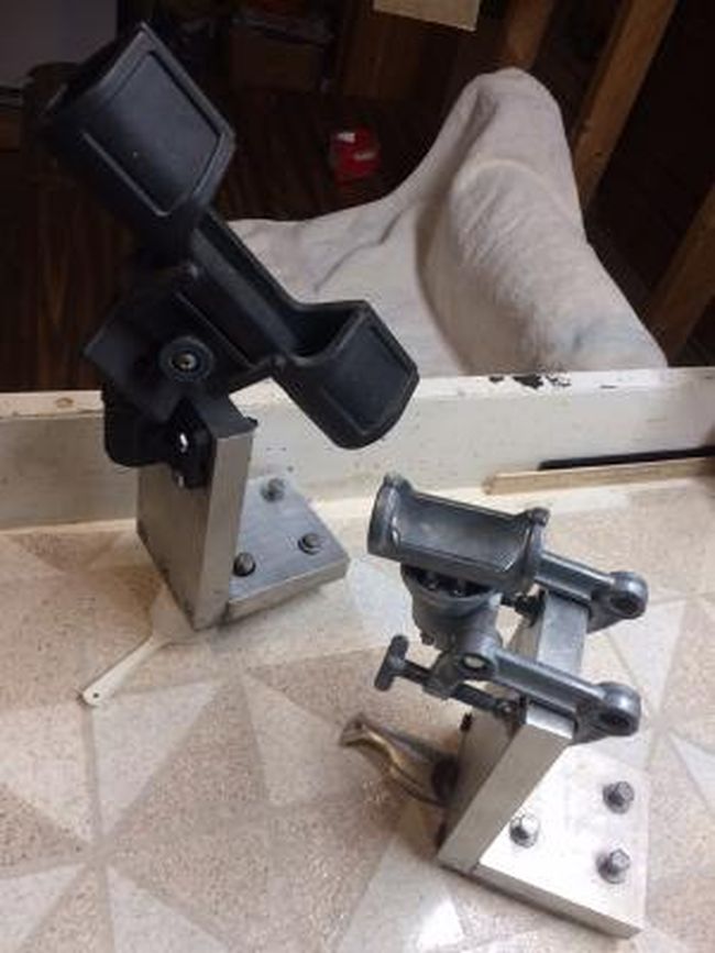 Location: SE, WI. | These custom holders fit perfect on my 681, and 618. Custom built by a tool and die guy. They R solid 1 inch Aluminum. Bolt on Base. Bolt on stainless hex bolts to L bracket . Holes on top of L are drilled for Side mount Folbe Base as Depicted. These holders will last a life time+++.