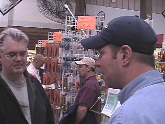 Posts: 32951 Location: Rhinelander, Wisconsin | Matt Thompson talks over an Eagle Lake map in the Thorne Bros. Booth A Shady Character in a Magic Booth! ToddM talking SUE into his favorite show mode---BUY!!! ( She did. She got a bunch of hot new baits for her Birthday) Franks Custom Rods Attachments ---------------- PANA0399.JPG (77KB - 215 downloads) PANA0400.JPG (68KB - 231 downloads) PANA0402.JPG (76KB - 247 downloads) PANA0404.JPG (63KB - 357 downloads) | ||