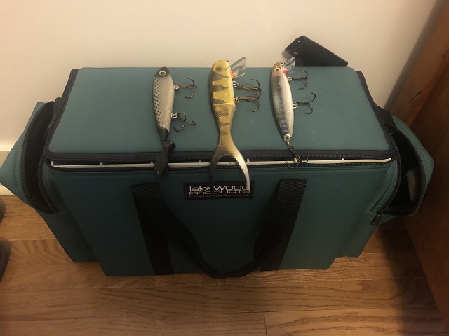 Lakewood tall Box with a shallow raider, shallow invader, and 6 inch phantom soft tail.