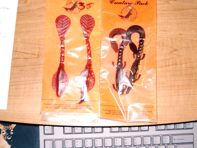 Posts: 32958 Location: Rhinelander, Wisconsin | Here are some pictures of the original Creatures sold by Musky Lunger Tackle in the late 70's and early 80's. I finally found that box that someone who had a bunch of the System Lures packages sent to me. Attachments ---------------- IMAG0031.JPG (104KB - 169 downloads) | ||