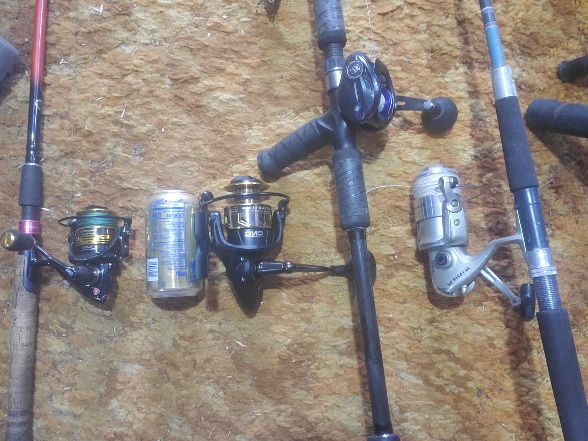 Posts: 543 Location: NW WI | Right to left: Shakespeare Platinum 5000, Prorex 400, Penn Battle 3 5000, 12oz soda, Favorite Jackhammer 2500. I agree with the others, your rod I imagine is rated for what 6oz max? I honestly don't know,just assuming. So your probably not throwing Pounders, 1 less reason to need 100lb. Secondly, depending on what style of baits and retrieves your doing- that heavy 5000 is going to fry your wrists quick if your doing alot of twitching and popping during retrieves. Fourthly I used to do the same thing; Run more affordable spinning setups and huck big baits with em on 80lb. Maybe it was just my reels-but loops and birds nests became a regular issue. I started with 65lb nearly knot free, switched to 80lb Spider Wire Invisibraid because it was a steal at a garage sale, than regretted the swap almost instantly. My only theory is that when you move up to those large diameter lines,because the line has much more mass itself it seems to maintain its helical momentum as it comes off the spool than u get split second stalls at the eyelets which kills your range and causes loops. The other problem I have with it is during jerk stop retrieves, if your slacked enough your line will sag too much between the last eyelet and bail and it'll loop itself on the body of reel. These problems don't happen every cast of course but they did happen annoyingly regularly. I used to get these Korean spinning reels for $20 off Ebay and they'd last about 2years. A 4000 series and 65lb 832 on a 7' Heavy Sojourn (3oz max) worked great. Plenty of smallies, Bowfin, large mouth, pike, and 3 Muskies (all sub 40") caught on that setup. Never did I get broke off. Attachments ---------------- 20220101_142456.jpg (130KB - 364 downloads) | ||