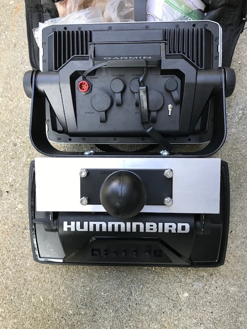 Posts: 446 Location: SW Ohio | I looked at the Precision Poor Man's mount but figured price was too high as it's only an angle. Went to the local Metal Store and picked up a piece of 3x3 aluminum angle, about 23" long, for $10. A little hacksaw and drill time later, I had both my Garmin and HB mounted with a Ram 2.25" mount. Works great, hold both steady in some heavy waves. The Garmin transducer is mounted on the TM, the HB is networked to the unit on the dash. Attachments ---------------- 65222845609__30C66529-A9CC-486A-BA6C-D0386C7FD947.jpg (133KB - 296 downloads) IMG_2029.jpg (125KB - 309 downloads) | ||