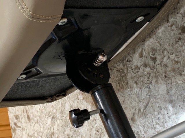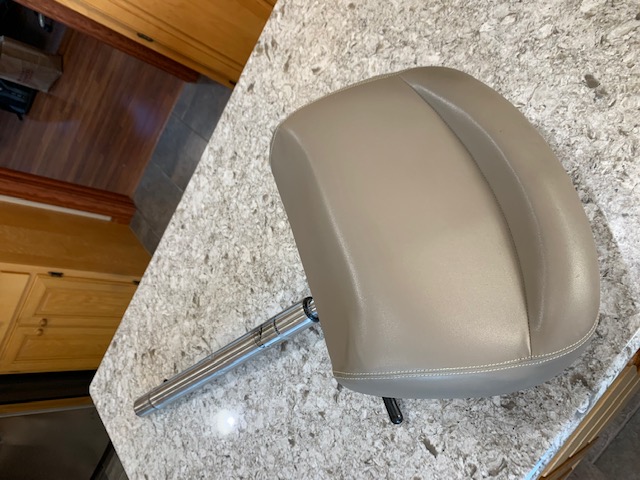 Springfield casting pedestal, lever adjustable 27"-33" height to the bottom of the seat, with 5-position tilt adjustment, and a light tan colored seat. Fits Springfield Spring-Lock bases, I had this on a 2014 Ranger boat and no longer have that boat. The seat was from Cabela's when it was new.