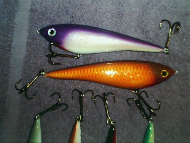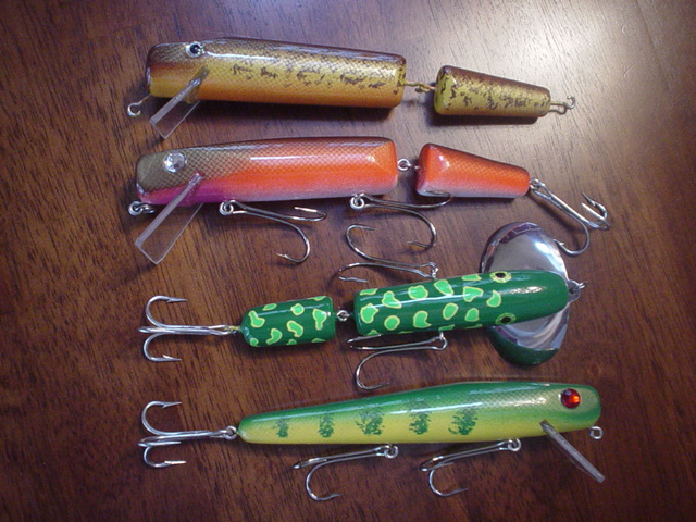 Posts: 1137 Location: Holly, MI | Last post of pics for me (I PROMISE). Couldn't resist. A few trolling baits turned from hardwood and a jumbo jitter-bug style. Attachments ---------------- Fishing 013.jpg (148KB - 159 downloads) | ||