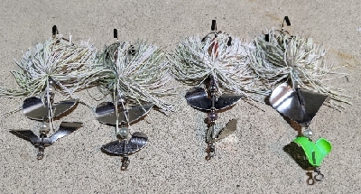 Posts: 20278 Location: oswego, il | Quite a few years ago I seen some.june bug spinners on sale and wanted to see how they would fare on a topwater bait. I never bought a drill press to do a thru-wire wood blank so I decided to make it the lead blade on a buzzbait. It far exceeded my expectations. The blade really vibrated the bait and had tiny popping noises like a tail bait. Very pleased. The bait with the green blade was overall louder and the other two had a more standard buzzbait splash. All worked to the surface very fast and easy and all the blades counter rotate. Attachments ---------------- PXL_20211018_192659616_1634585816337_1634586767831.jpg (101KB - 263 downloads) PXL_20211018_192711906_1634585843567_1634586794891.jpg (89KB - 262 downloads) PXL_20211018_192733012_1634585870357_1634586821899.jpg (63KB - 266 downloads) | |||