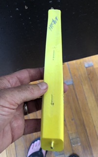 I have similar lure I bought and made by Mike Ruff of Ruff lures (maker of the Rad Dawg spinner) except it has a metal plate on the front and straight on the real part. I dug out a old Thorne Bros. "Muskie Fever" catalog from 1991 and as Danny (True Tiger Tamer)pointed out the Mark Windells had a jerkbait and the name is "Muskie Hunter" straight on the back end and also a bait L& L Muskie Exciter I think Dick Moore made this lure. I know I bought four bass sized (L &L) lures from him. but does not have the slanted end.