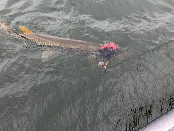 Posts: 444 Location: SW Ohio | Identifies as a musky. Caught on a spinnerbait. Attachments ---------------- C5B28659-1098-49CE-A475-9C75512FB5C7.jpeg (58KB - 236 downloads) 96C2473D-79A0-4B4B-85BD-57338766D738.jpeg (46KB - 209 downloads) | ||
