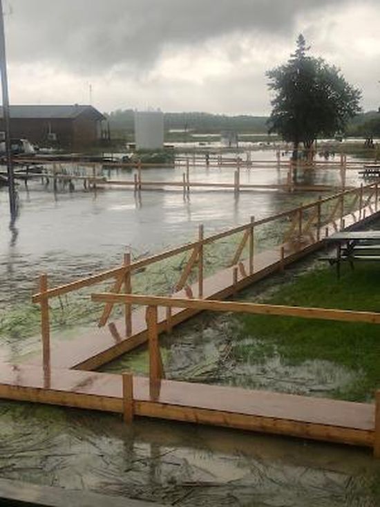 Posts: 2331 Location: SE, WI. | Here you go musky man; Just got back Saturday after a 12 day stay. Boated 32. Not a bad trip considering conditions... 10th -16th was clean water, and lighter winds. Sunday the 17th, 2 tornados rip through the woods. 1 hit grassy narrows resort, shutting down their resorts power for 2-3 days. Other tornado went through just north of cushings/ lilly area. Monday the 18th, we fished that area. Saw many tree tops floating around, along with whole pine trees drifting. Saw the island where tornado went through. About 15-25 trees were broke in half. Navigation was touchy. A lot of other debris in the water. leaves, pine needles, branches. Every island has several trees now laying in the lake. The high waters, flooded roots, now the strong winds, trees just could not handle the conditions. Along with the strong winds, the waves pounding the shore lines, along with 4-5 inches of rain, Sunday, Monday and Tuesday, caused many of the bays/coves to muddy up! Water clarity took a hit. Many, probably half of our fish were beat up from spawning still. When we arrived, 1 resort owner asked if we saw their pets by the pier. Yes, a 50+and another were still spawning the 10th of July. I'm sure the high water levels played into the delayed spawn for many fish. I talked with others about their catches, and yes, there fish were scared up also. I think because of the late spawn, our biggest fish seen were in coves and bays . I'm sure the transition to rocks has started, as we raised several on reefs. reef fish seemed done with scaring and spawned earlier. Our resort did a Great job with catering to its customers by building ramps to the piers. This picture is from after the tornado's came through, along with the several inches of rain couple days after. After Talking to other musky guys, fishing was tough for many, only seeing 2-5 fish daily. All patterns seem to work. Guys were jigging deep and getting fish....20-40' current areas. . Also casting Jerks, Bucks, topwater, cranks, all took fish. I think our best day, we moved 10-11, caught 7 of those! Feel bad for these resorts....first Covid, NOW this high water has got to take its toll! Thank them for what they DO! JD