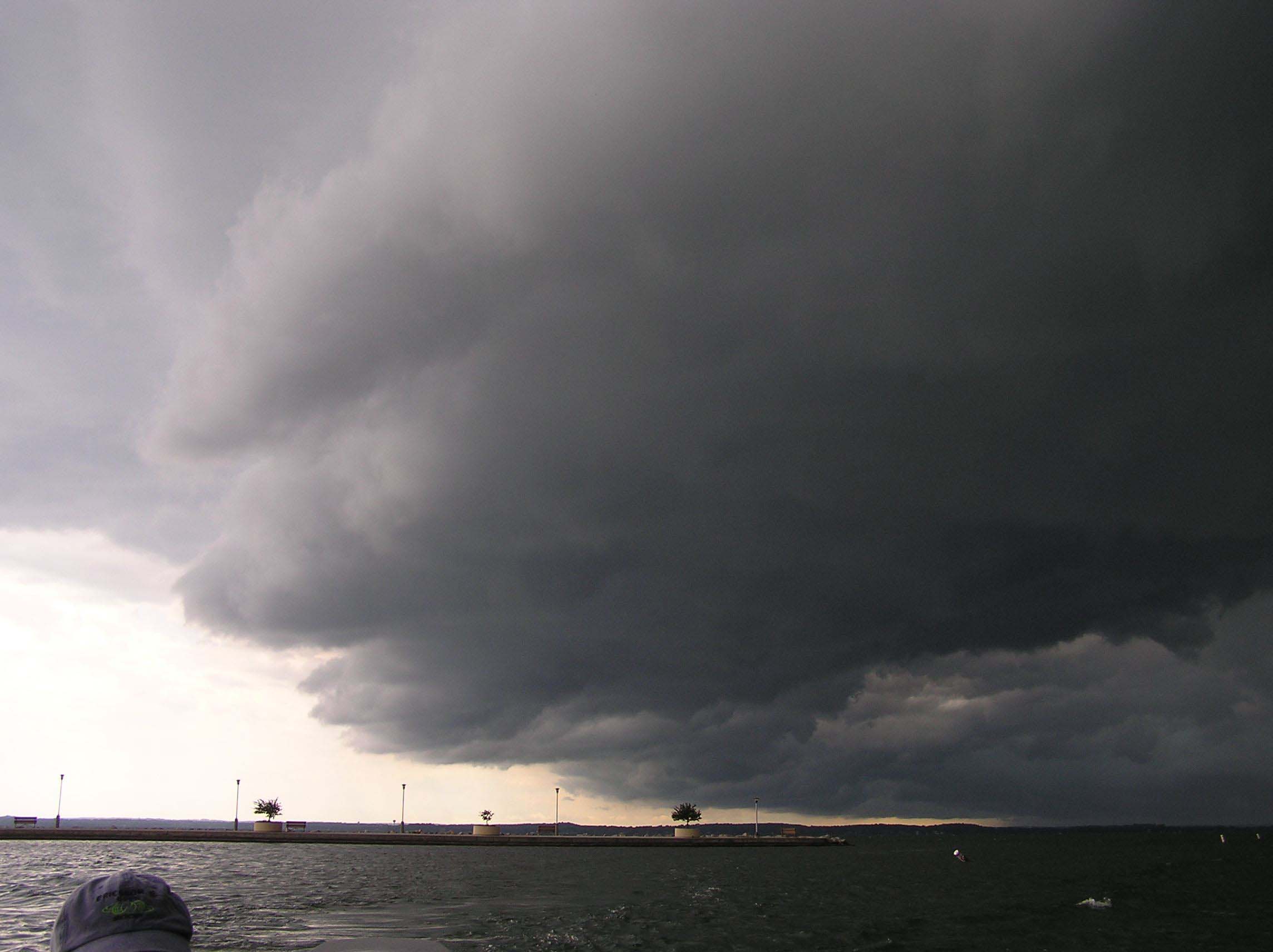 Posts: 8865 | There have been a few. Once on Eagle where it rained so hard you couldn't see the shoreline or hear the other people in the boat unless you yelled as loud as you could. Even with rain gear we got totally soaked. When we got back to camp everyone was like "What the hell happened? Did you fall in the lake?!" as we were literally pouring water out of our boots. Turns out everybody else in camp was fishing the West arm that day in the sun while we soaked ourselves through down near Osbourne. Second would be the attached picture. Kind of a wacky day, got chased off the water a few different times earlier in the day. We were facing West in a heavy West wind with a drift sock out and the trolling motor going full tilt trying to get a good drift. Bright sun, no hint of bad weather. All of a sudden the wind just stopped. We were talking about how weird it was when one of the guys looked East behind us and said "WOOOAH Holy *****!!!" It was like a wall coming over the horizon. We packed it up as quick as we could, wide open throttle all the way back to the landing. This picture was taken as we were approaching the landing 5 minutes later. (or however long it takes to get across Lake Mendota) By this time the wind had turned around to the North, the temperature had dropped about 20 degrees. We packed up, loaded the boat on the trailer and got in the truck about the time the first three drops hit the windshield. By then you could no longer see the North end of the lake. We got out of Madison and onto 39 in some of the heaviest rain I've ever seen. We watched that thing in our rearview mirror all the way back to the IL state line. Called a few buddies from the area the next day. Turns out they had all kinds of trees down, 70 MPH wind gusts, 1" hail and all sorts of other stuff. 5 minutes later and we would have been out on the water in the middle of it Attachments ---------------- Storm 1.jpg (164KB - 130 downloads) | ||