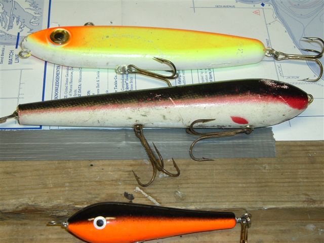 Rip n Glide, Eddie, and a small weighted hellraiser cherry bomb.  Make offer.  Looking for mallard topraider, phantoms, pacemakers, and grinder spinnerbaits.  Also looking for old 10" jakes with the squared off lips.
